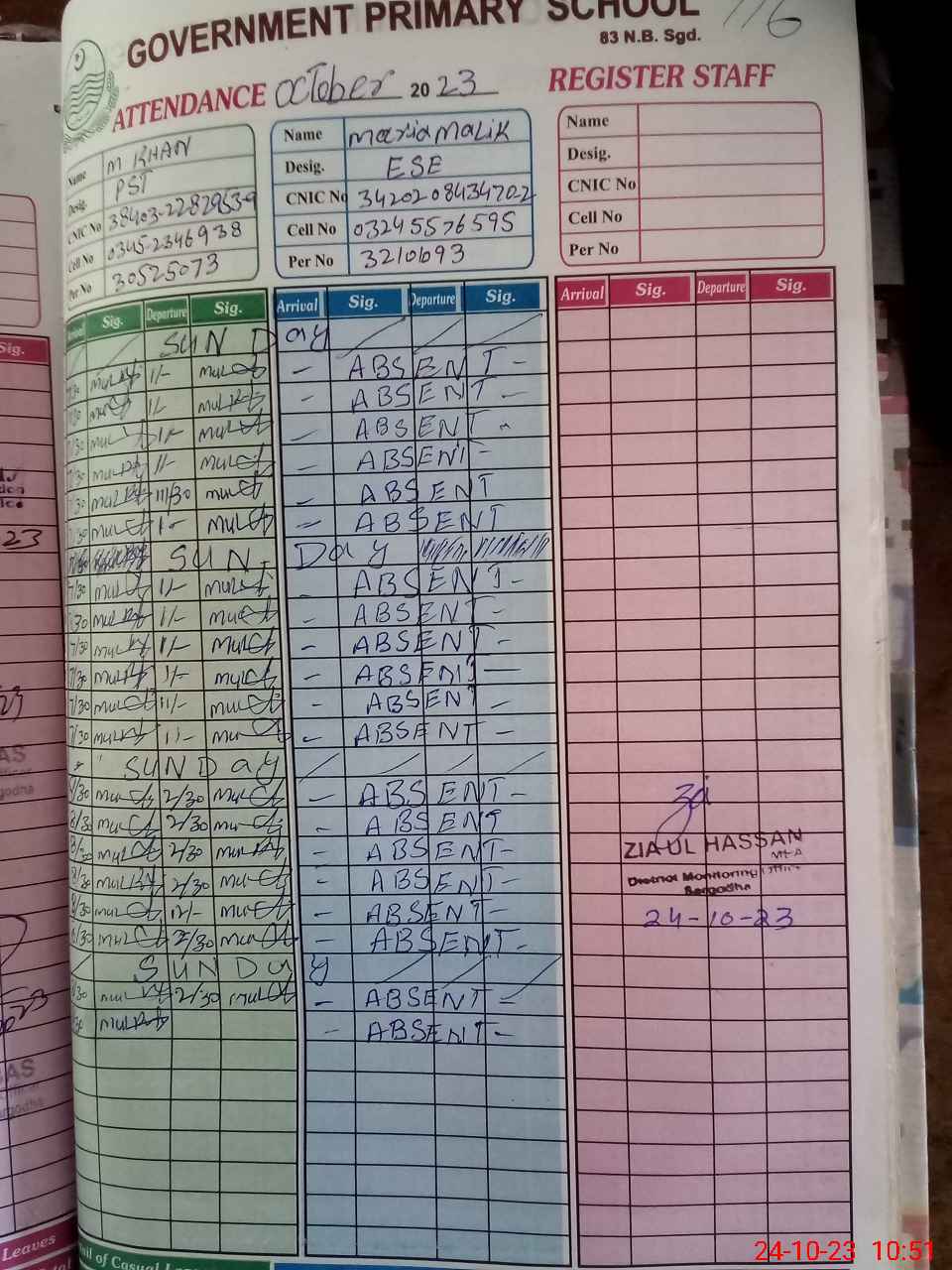 | 34**** | Ma**** Ma**** | 2 | 2 | 0 | 0 | 0 | 0 | 0 | 0 | 0 | 0 | 0 | Absent (Un-Authorized) |