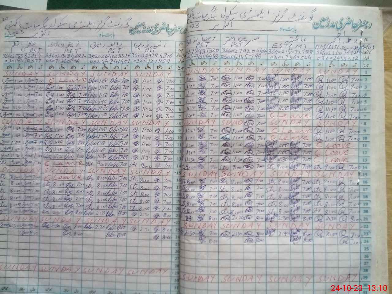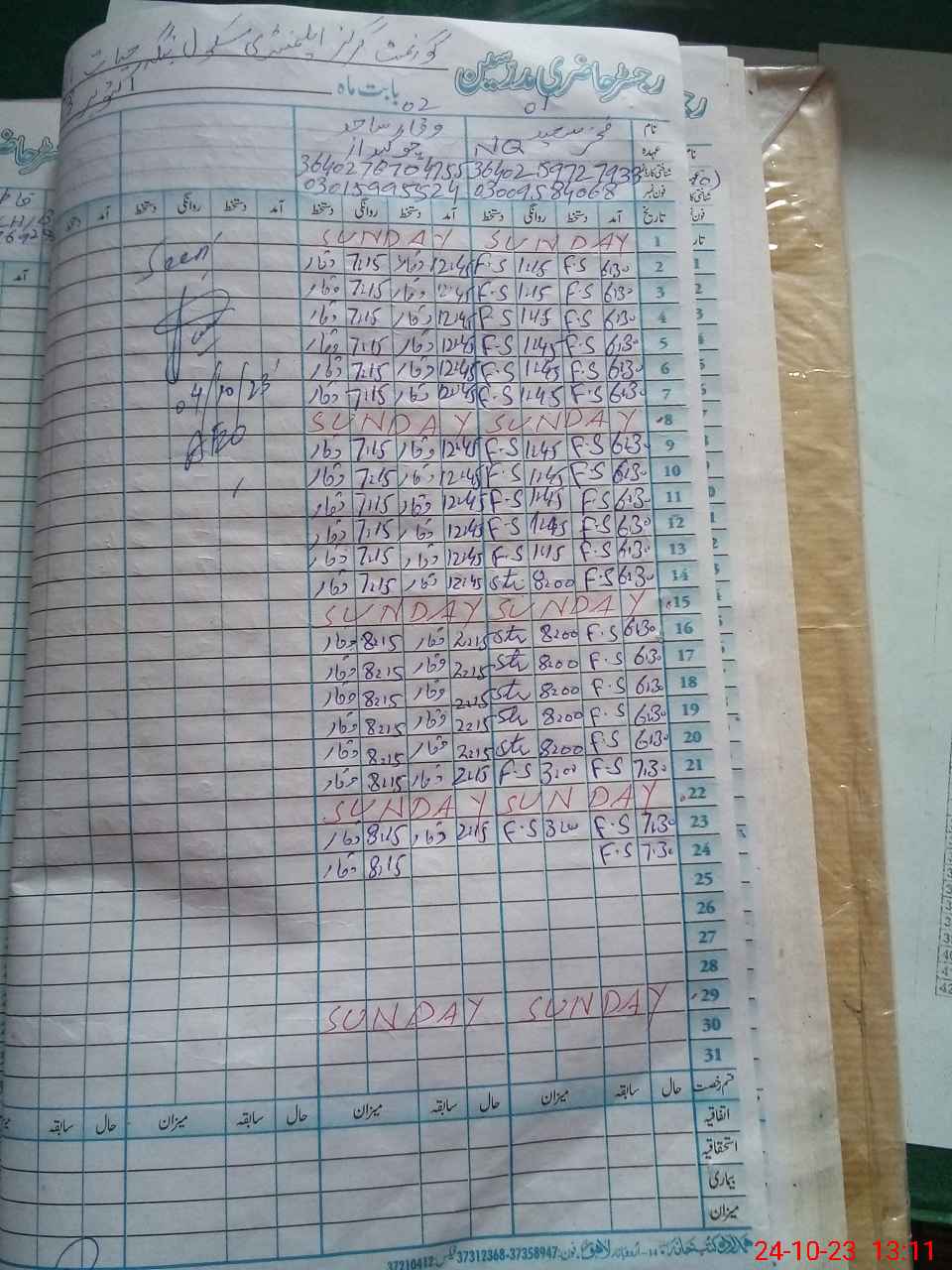 | CNIC | Full Name | Designation | R/C | Absence During Last Calender Month |