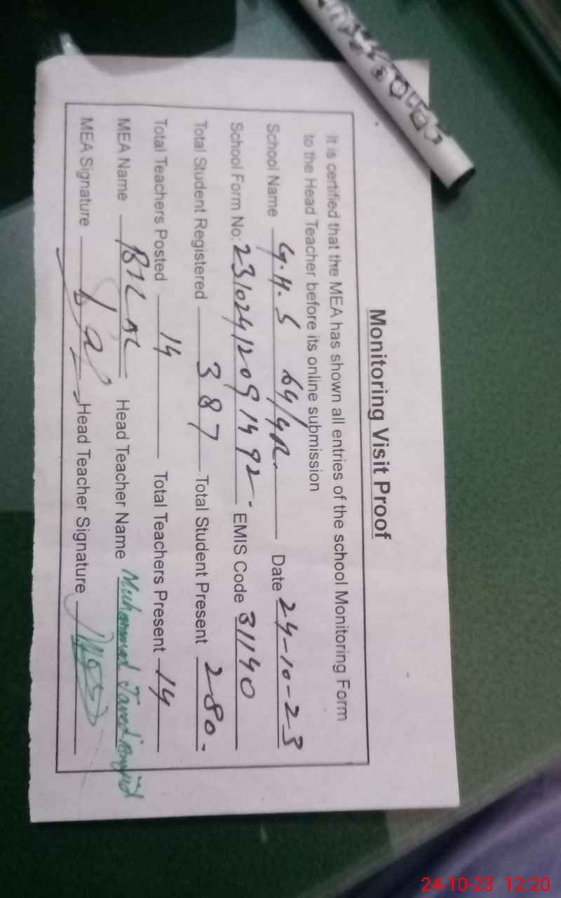 | EMIS Code: 31140062 | Name of School: GHS CHAK 64/4-R | |||