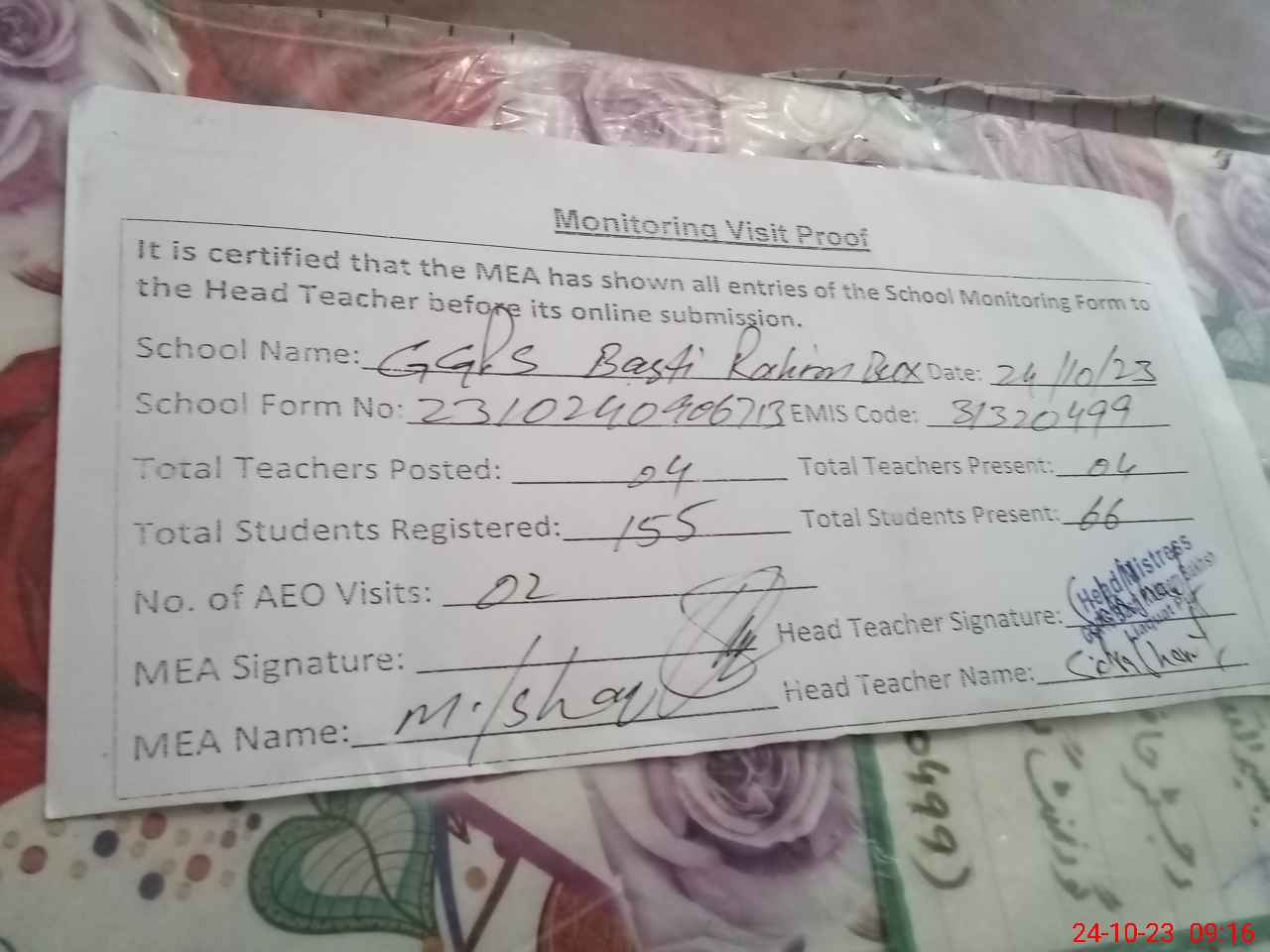 | EMIS Code: 31320499 | Name of School: GGPS BASTI RAHEEM BUX | |||