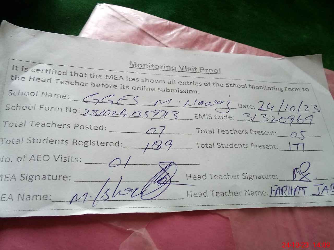 | EMIS Code: 31320969 | Name of School: GGES MUHAMMAD NAWAZ SHAH | |||