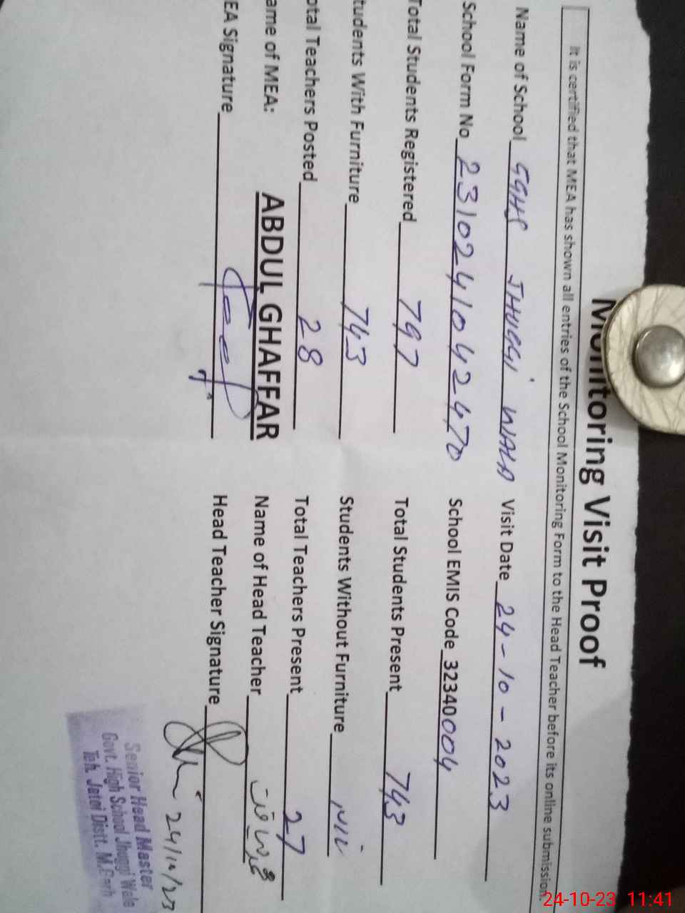 | EMIS Code: 32340004 | Name of School: GHSS JHUGGI WALA | |||