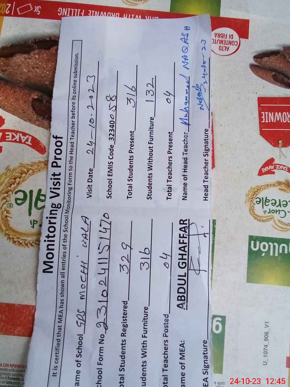 | EMIS Code: 32340058 | Name of School: GPS MOCHI WALA | |||