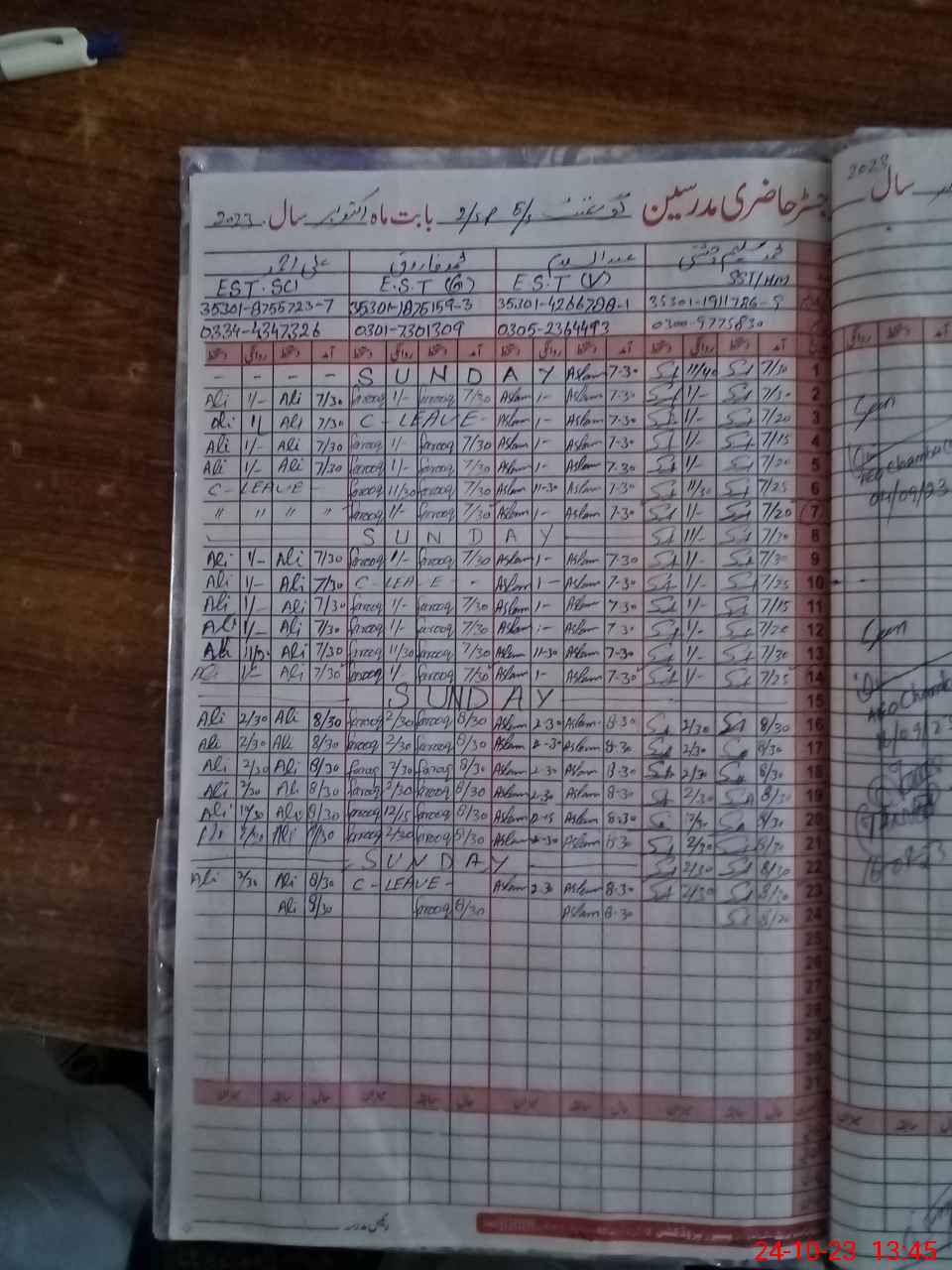 | CNIC | Full Name | Designation | R/C | Absence During Last Calender Month |