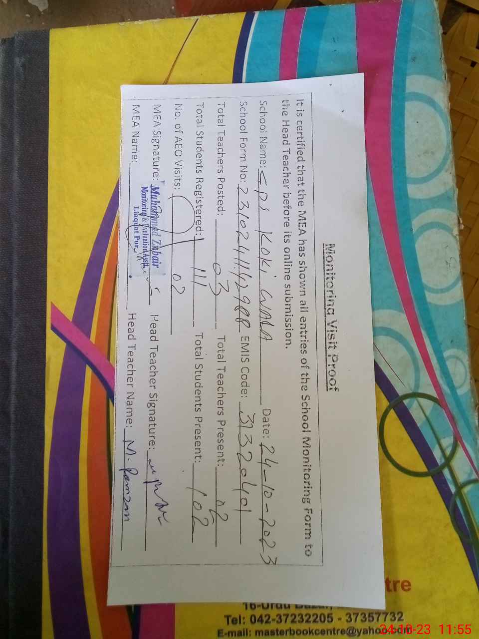 | EMIS Code: 31320401 | Name of School: GPS KOKI WALA | |||