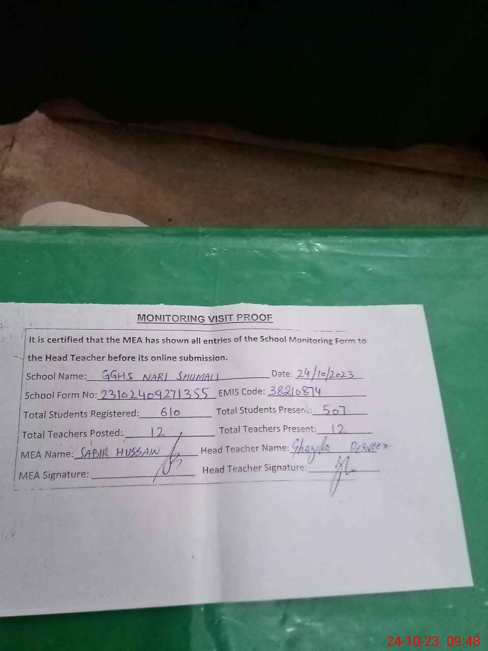 | EMIS Code: 38210874 | Name of School: GGHS NARRI SHUMALI KHUSHAB | |||