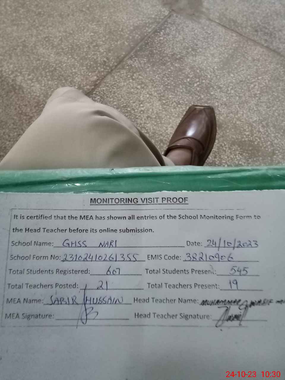| Attendance Register | Head Teacher | MEA with School | Visit Proof |
