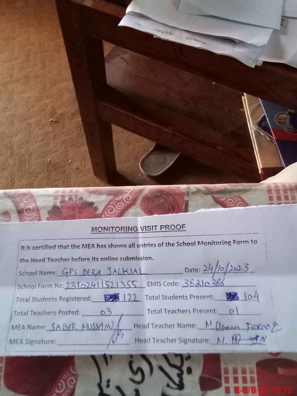 | EMIS Code: 38210386 | Name of School: GPS DERA JALKIAL | |||