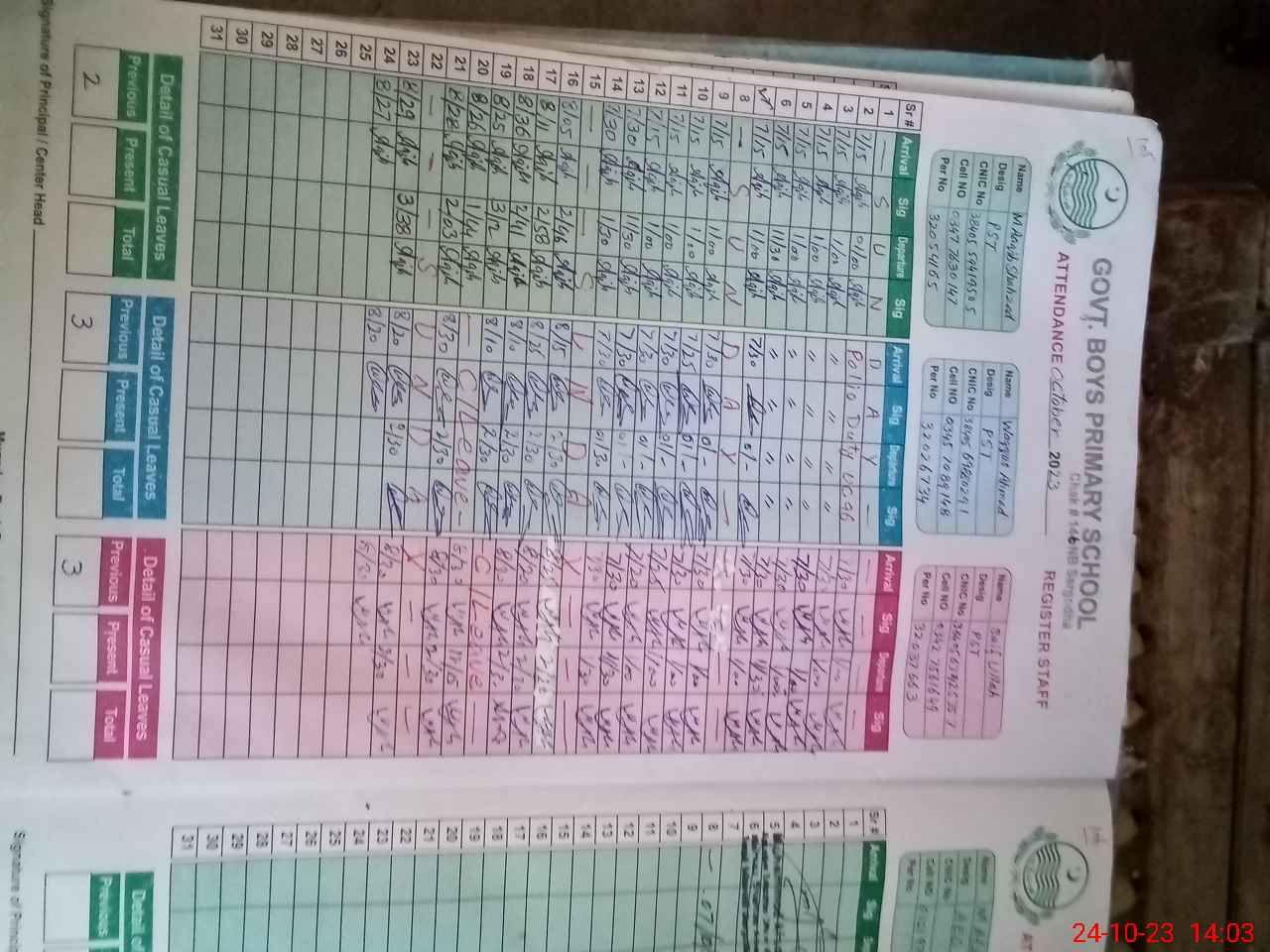 | CNIC | Full Name | Designation | R/C | Absence During Last Calender Month |
