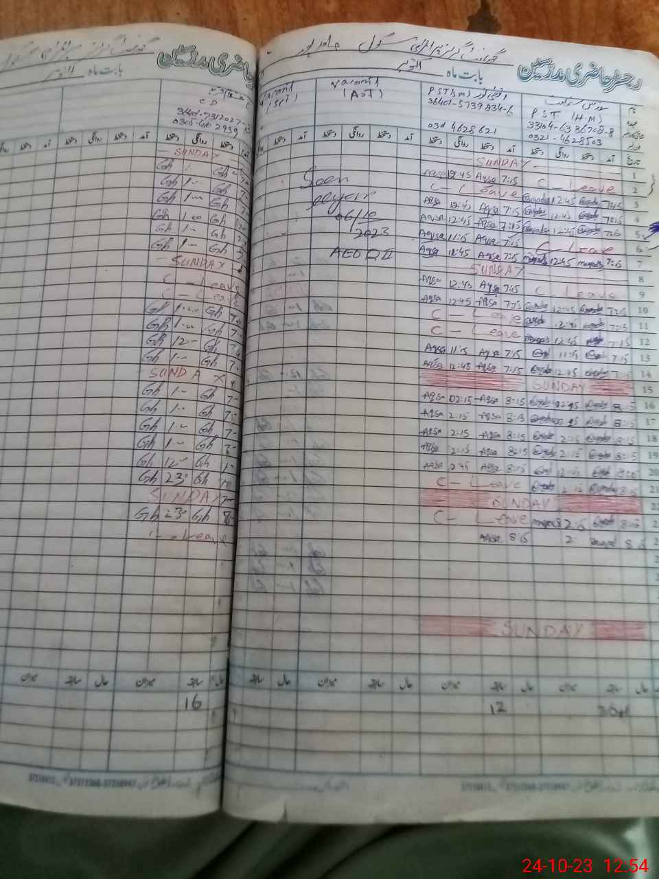 | Leave | Duty | Absent | Maternity | Medical | Ex- Pak |