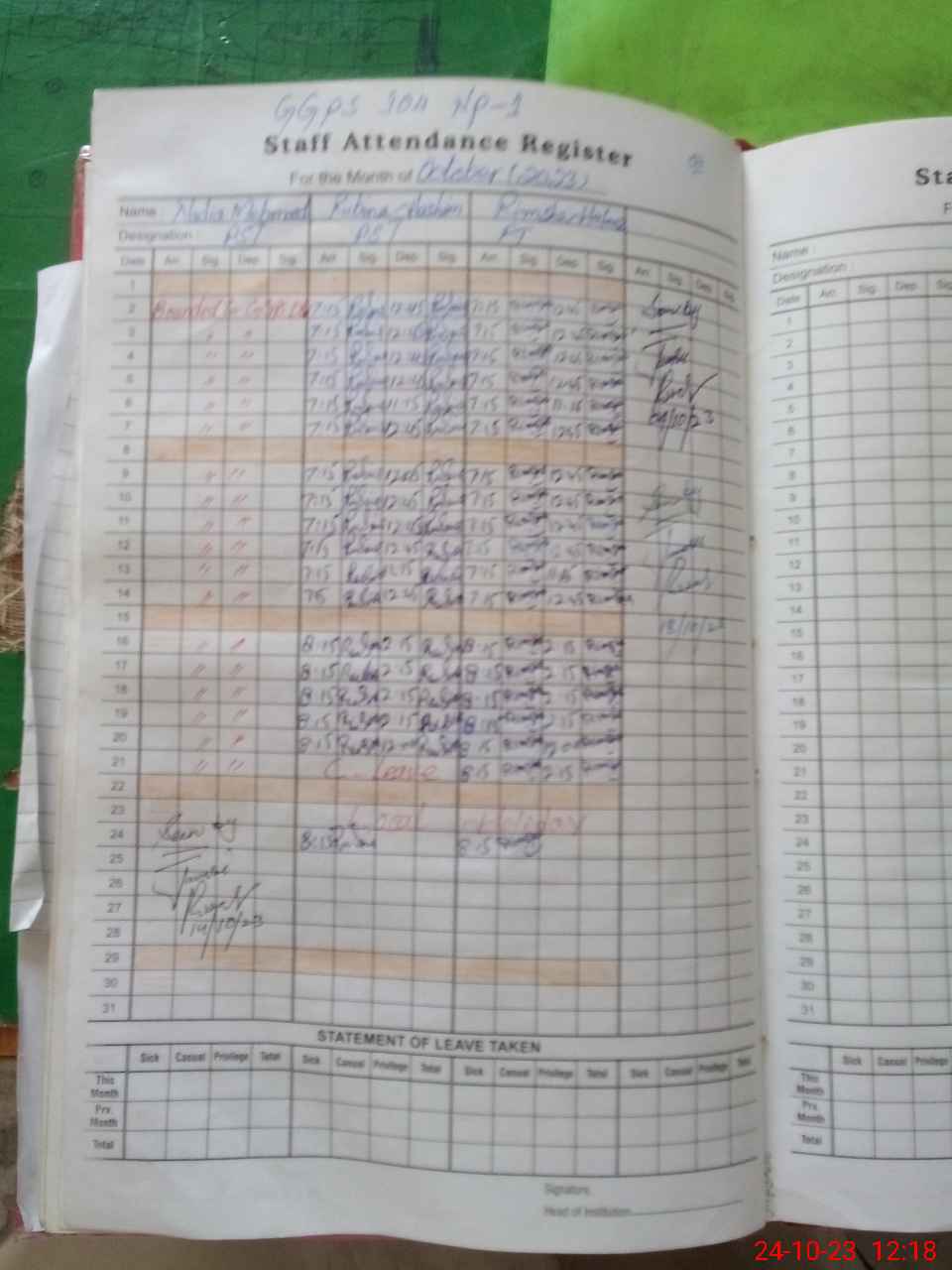 | 31**** | Na**** Me**** | 2 | 0 | 30 | 0 | 0 | 0 | 0 | 0 | 0 | 0 | Absent (Un-Authorized) | |