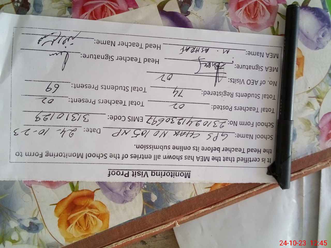 | EMIS Code: 31310129 | Name of School: GPS CHAK NO. 105/NP | |||