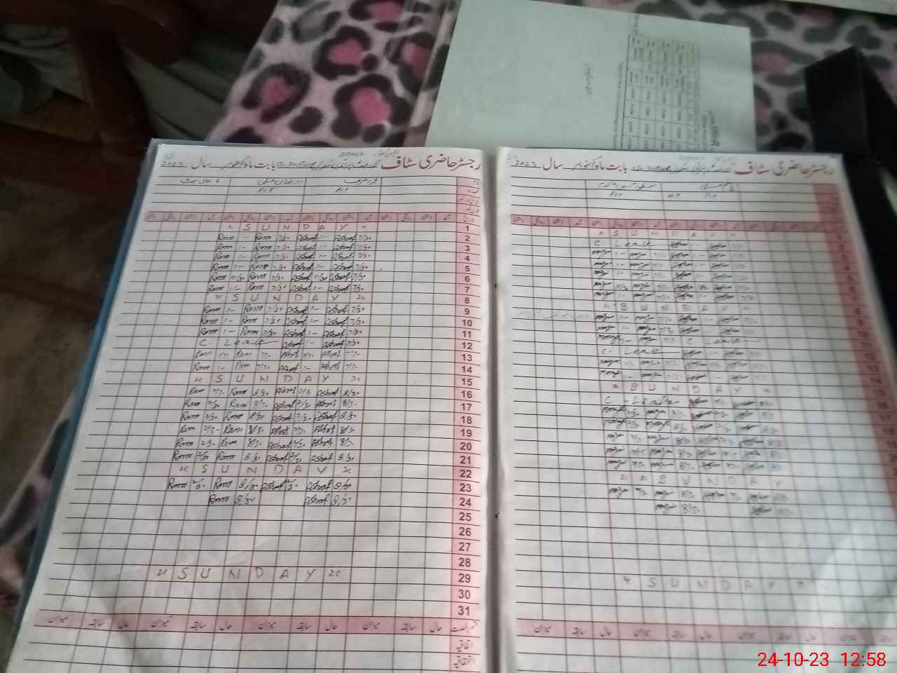 | CNIC | Full Name | Designation | R/C | Absence During Last Calender Month |