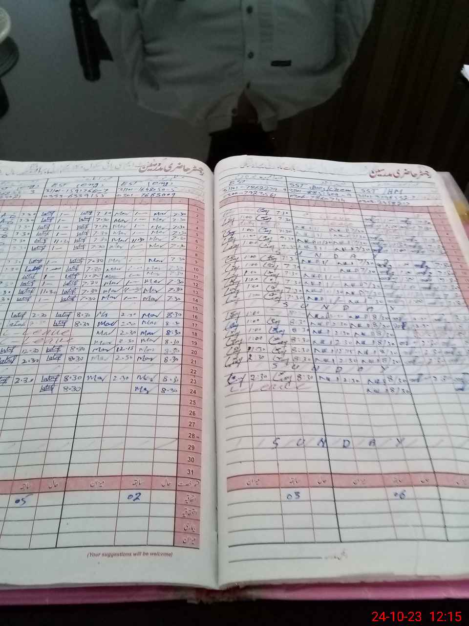 | CNIC | Full Name | Designation | R/C | Absence During Last Calender Month |
