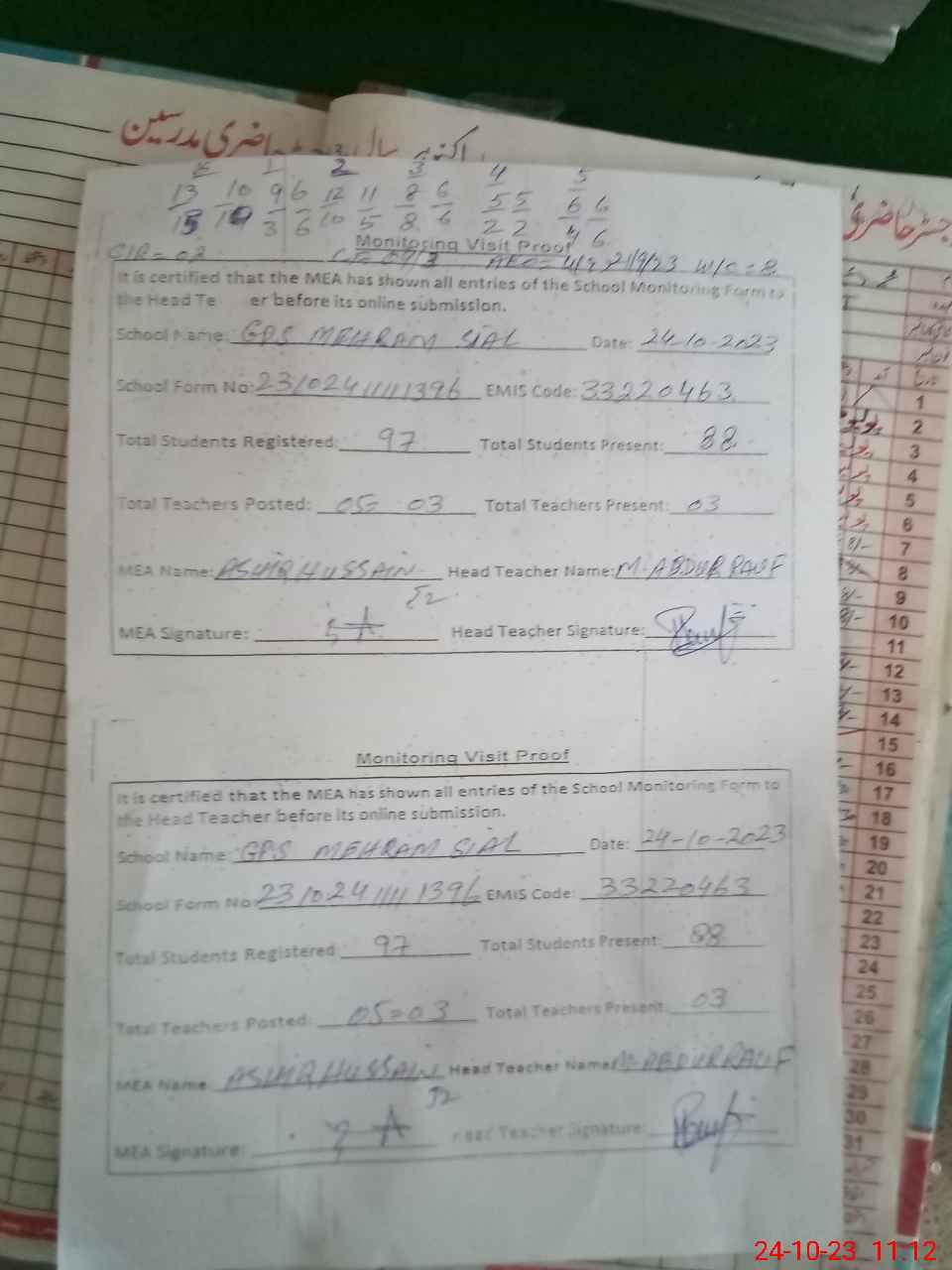 | EMIS Code: 33220463 | Name of School: GPS MEHRAM SIAL | |||