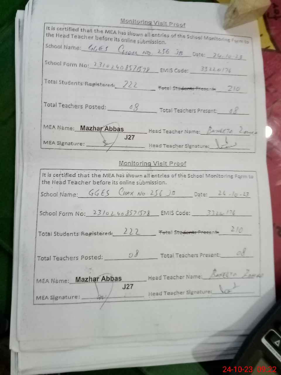 | EMIS Code: 33220176 | Name of School: GGES CHAK NO 256 JB | |||