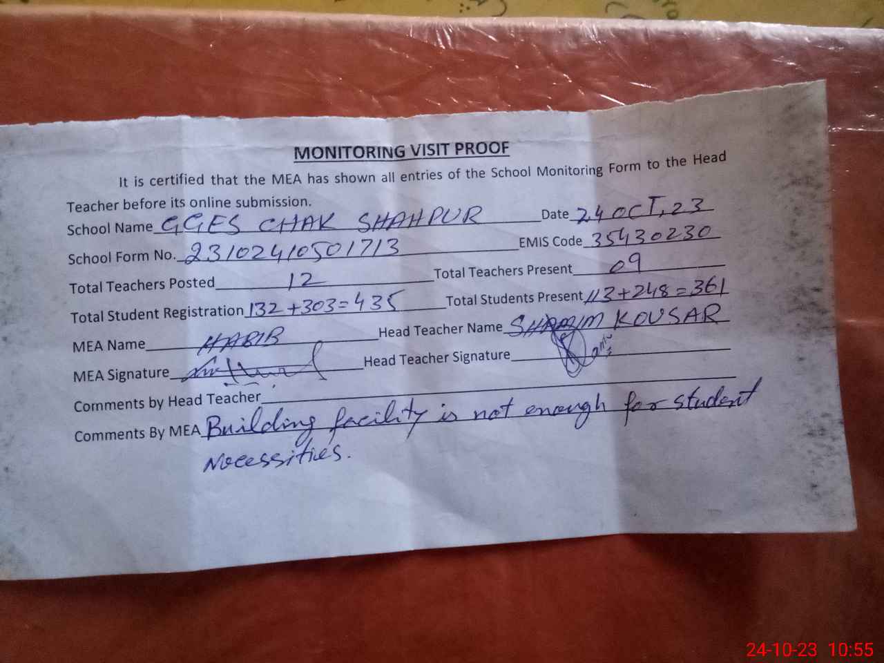 | EMIS Code: 35430230 | Name of School: GGES CHAK SHAHPUR | |||