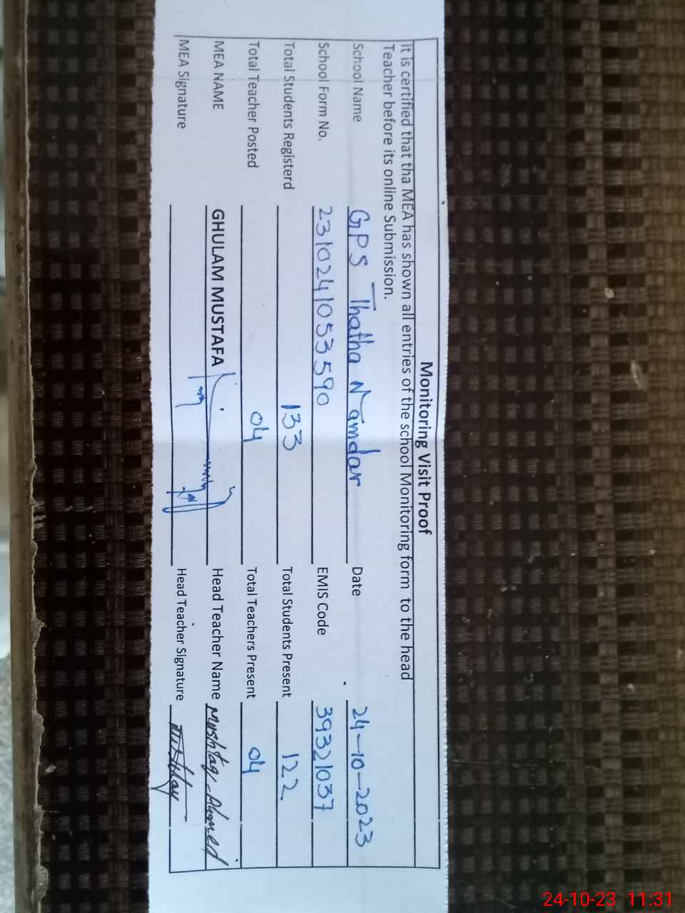 | EMIS Code: 39321037 | Name of School: GPS THATHA NAAM DAR | |||
