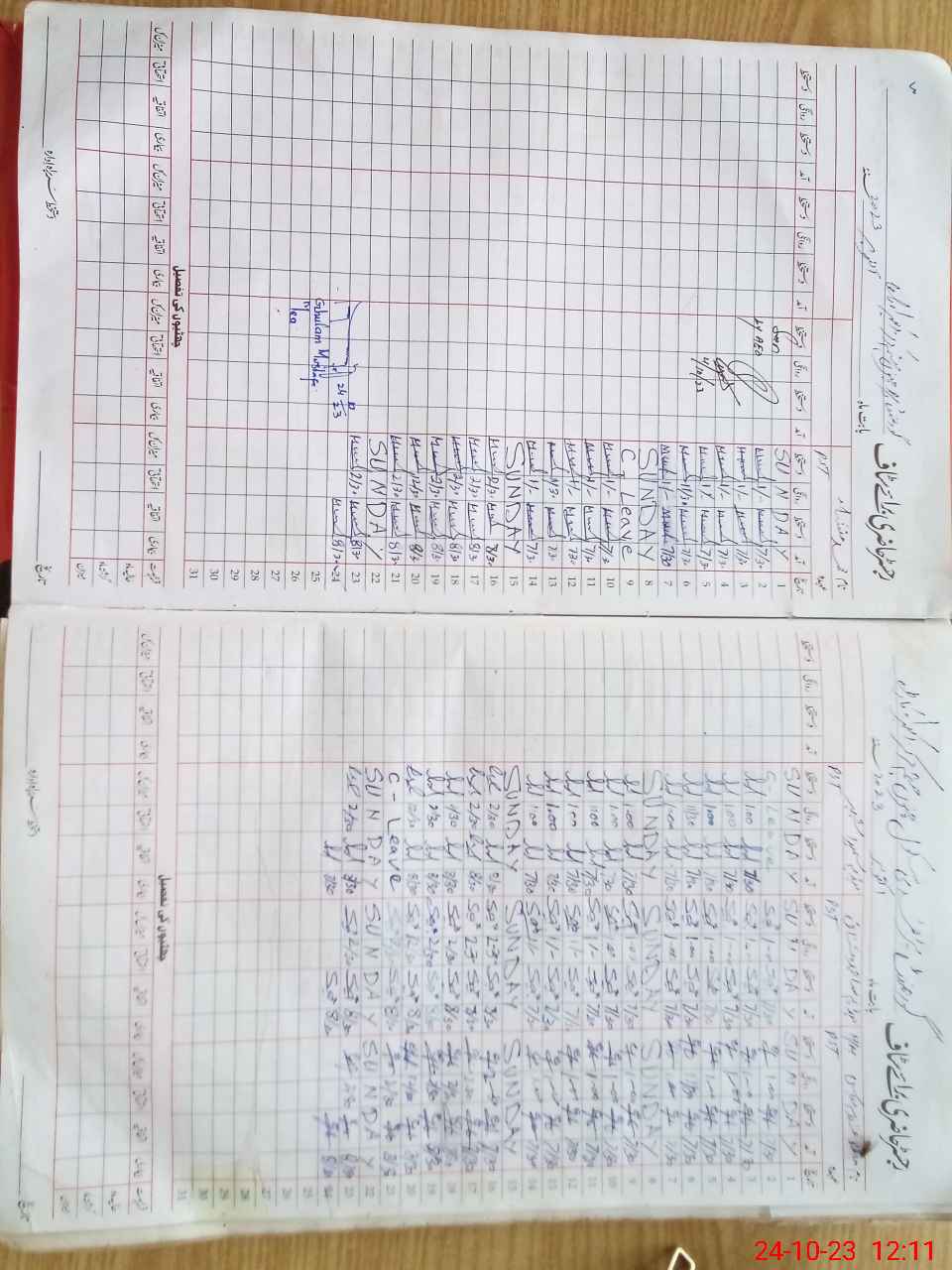 | CNIC | Full Name | Designation | R/C | Absence During Last Calender Month |