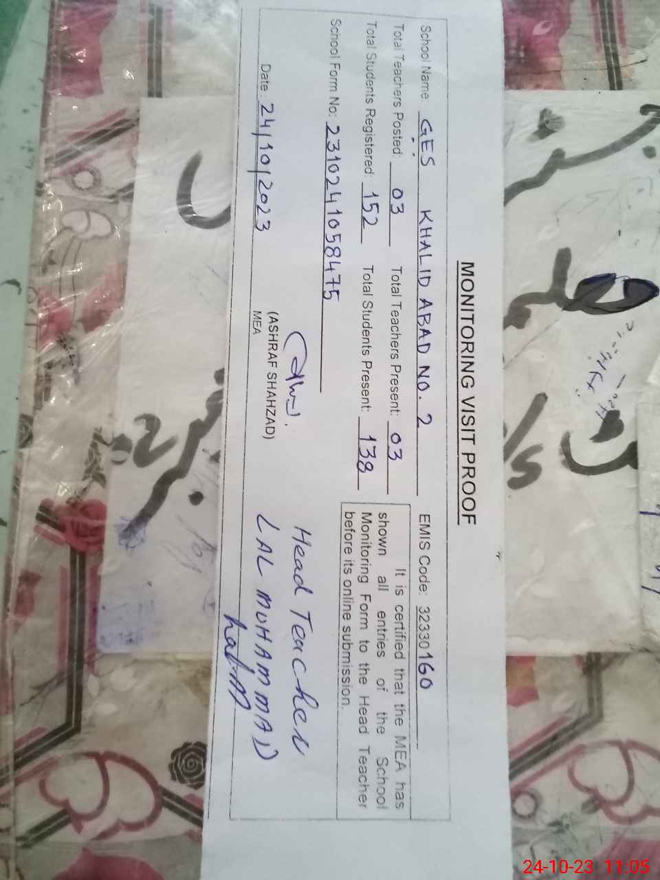 | EMIS Code: 32330160 | Name of School: GES KHALID ABAD NO 2 | |||