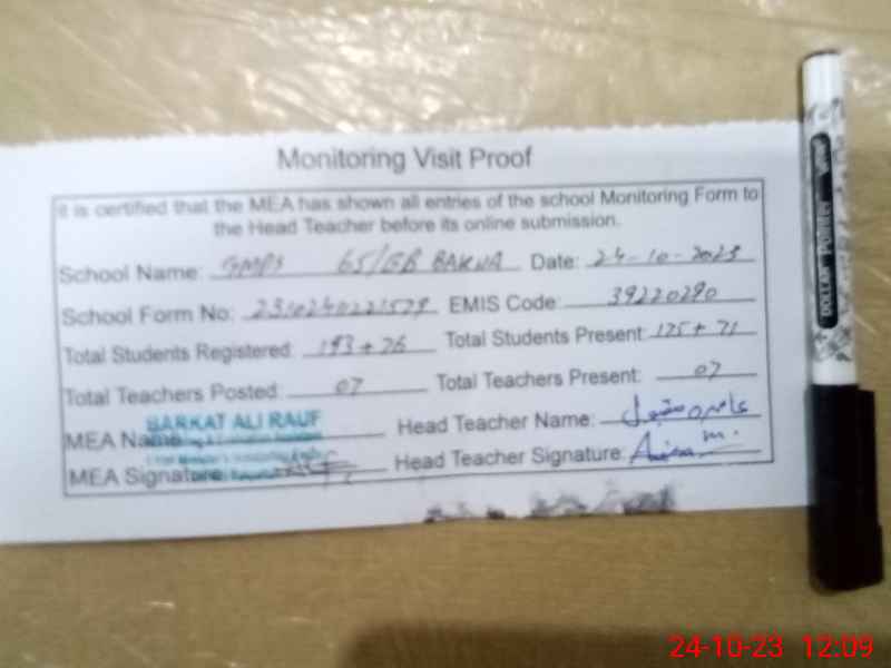 | EMIS Code: 39220290 | Name of School: GMPS 65 EB BAKHA P/O ARIFWALA PAKPATTAN | |||