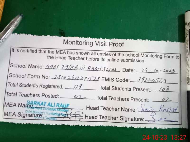 | EMIS Code: 39220563 | Name of School: GGPS 79/EB III basti jalal | |||
