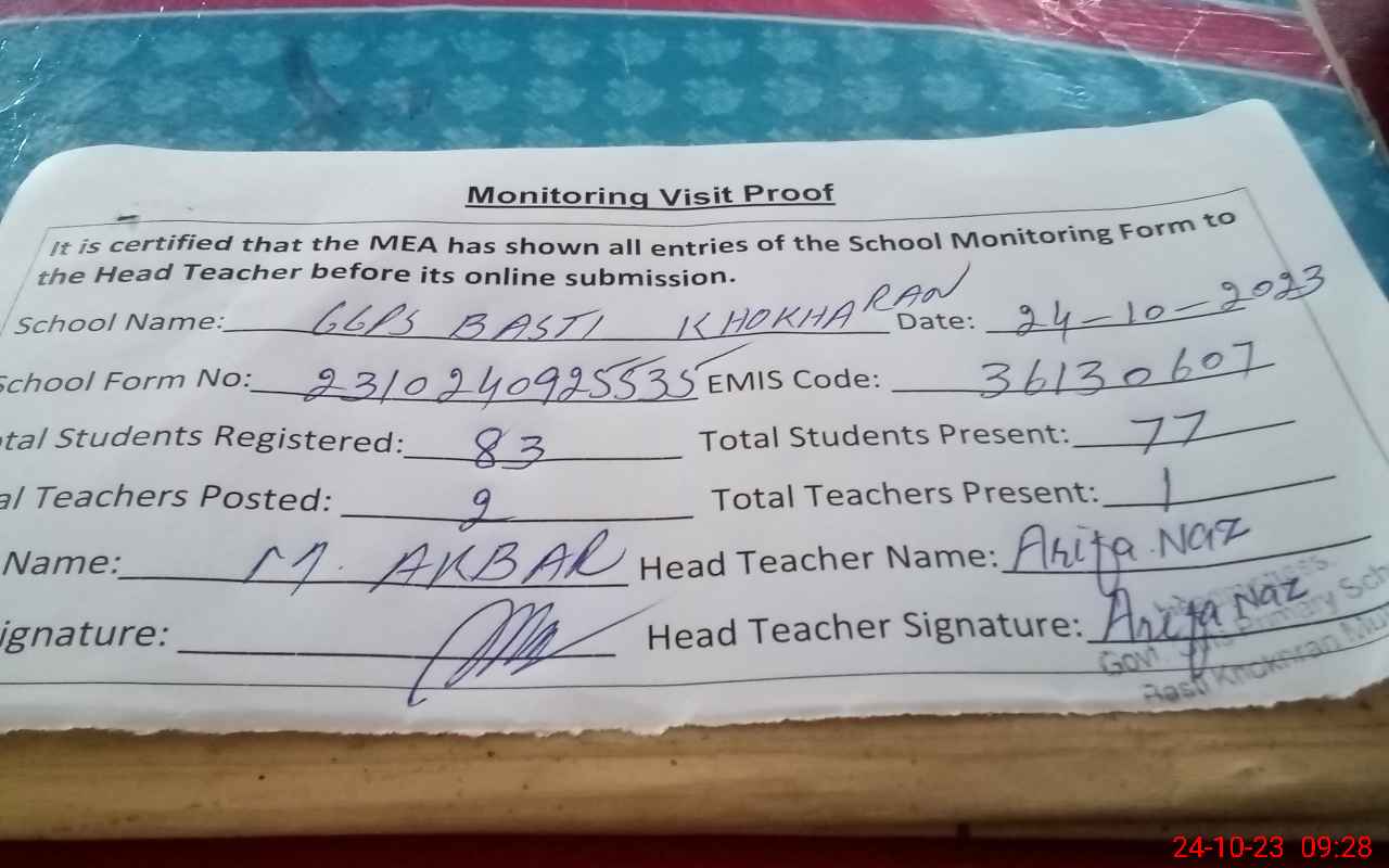 | EMIS Code: 36130607 | Name of School: GGPS KHOKHRAN MULTAN OLD SHUJABAD ROAD KHOKHRAN MULTAN | |||