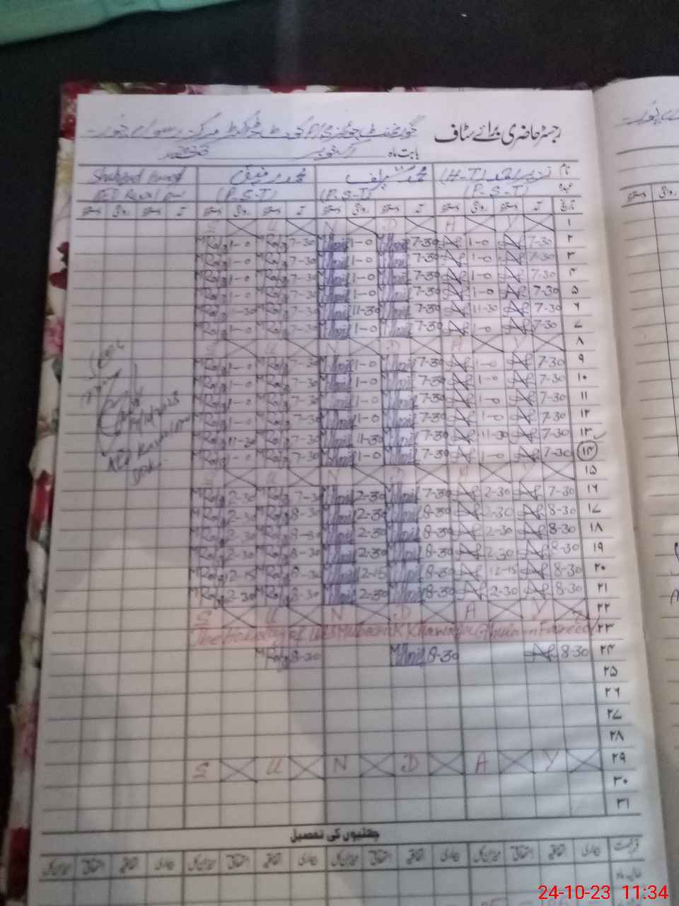 | CNIC | Full Name | Designation | R/C | Absence During Last Calender Month |
