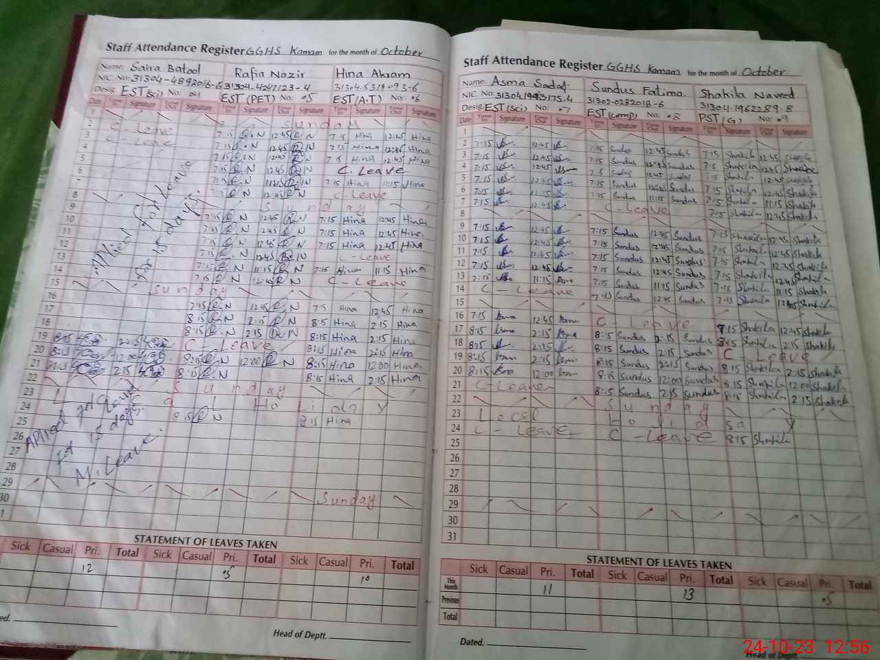 | 31**** | Sa**** Ba**** | 1 | 2 | 0 | 0 | 0 | 0 | 0 | 0 | 0 | 2 | Absent (Un-Authorized) | |