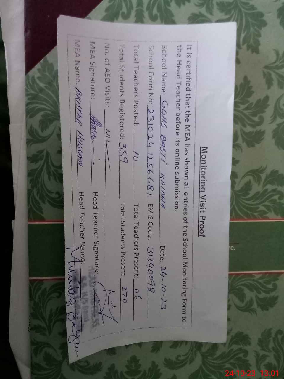 | EMIS Code: 31340098 | Name of School: GGHS BASTI KAMAM | |||