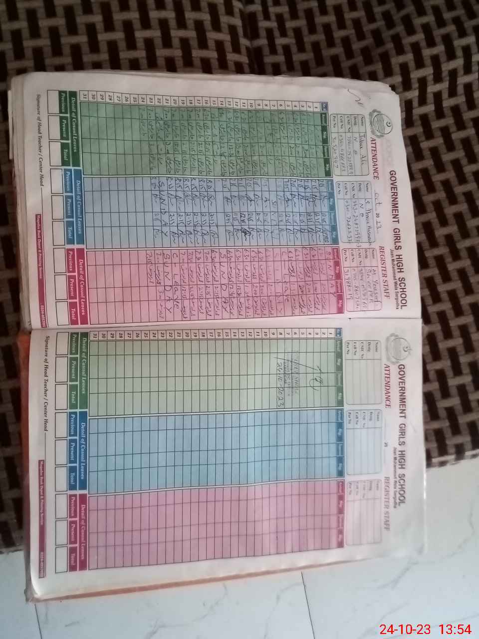 | Name: UF**** FE**** Designation: (School Headmaster's/Headmistress's) HEADMISTRESS Phone/Cell Number: 03**** |