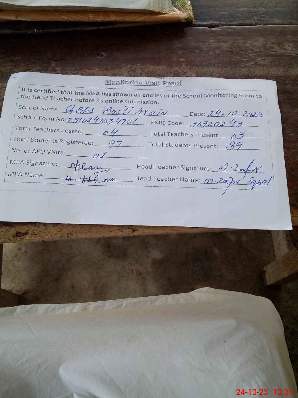 | EMIS Code: 31320243 | Name of School: GPS BASTI ARAIN | |||