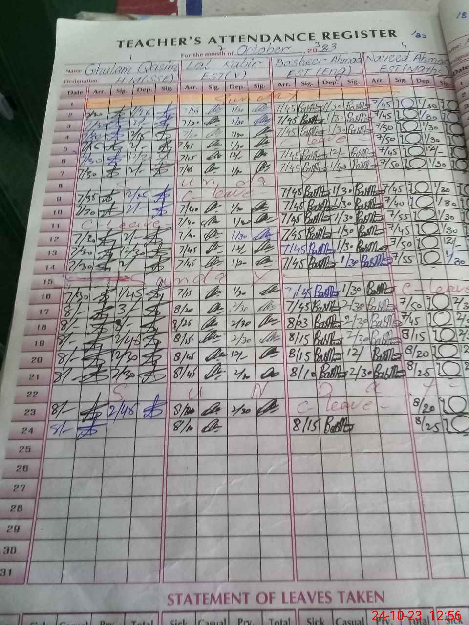 | 33**** | Ra**** An**** | 3 | 1 | 0 | 0 | 0 | 0 | 0 | 0 | 0 | 0 | 0 | Absent (Un-Authorized) |
