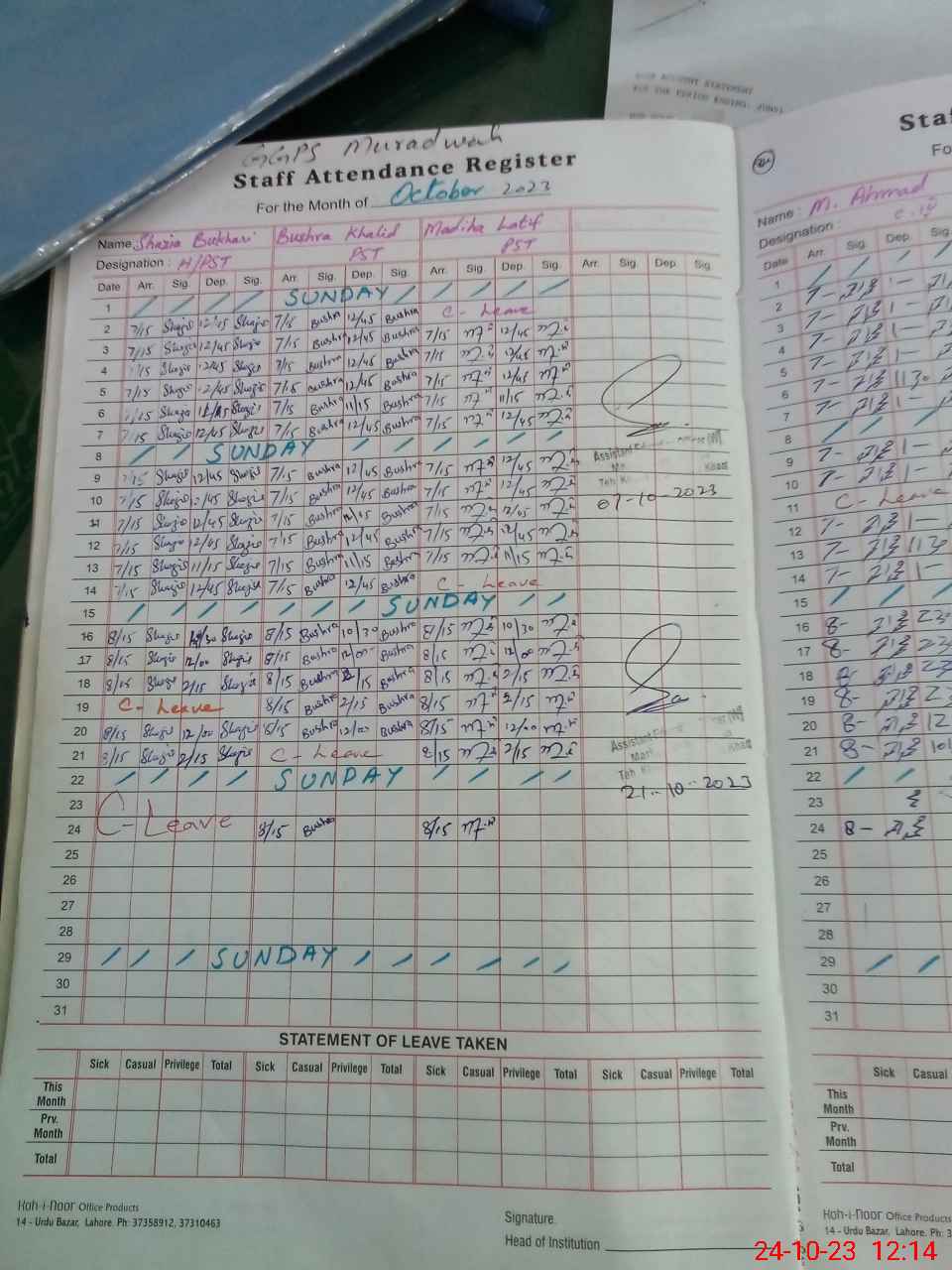 | Leave | Duty | Absent | Maternity | Medical | Ex- Pak |