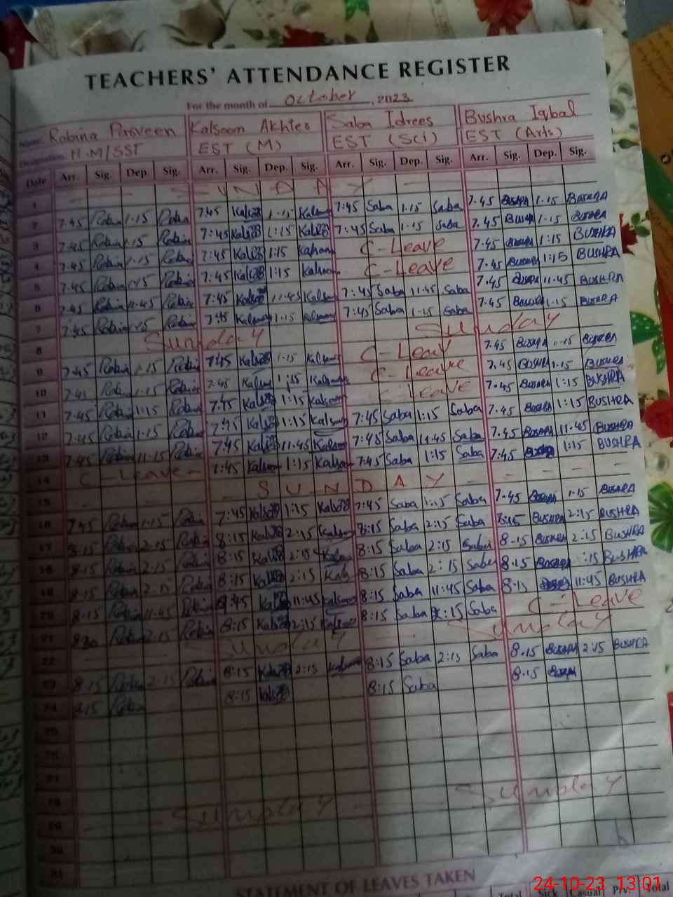 | Leave | Duty | Absent | Maternity | Medical | Ex- Pak |