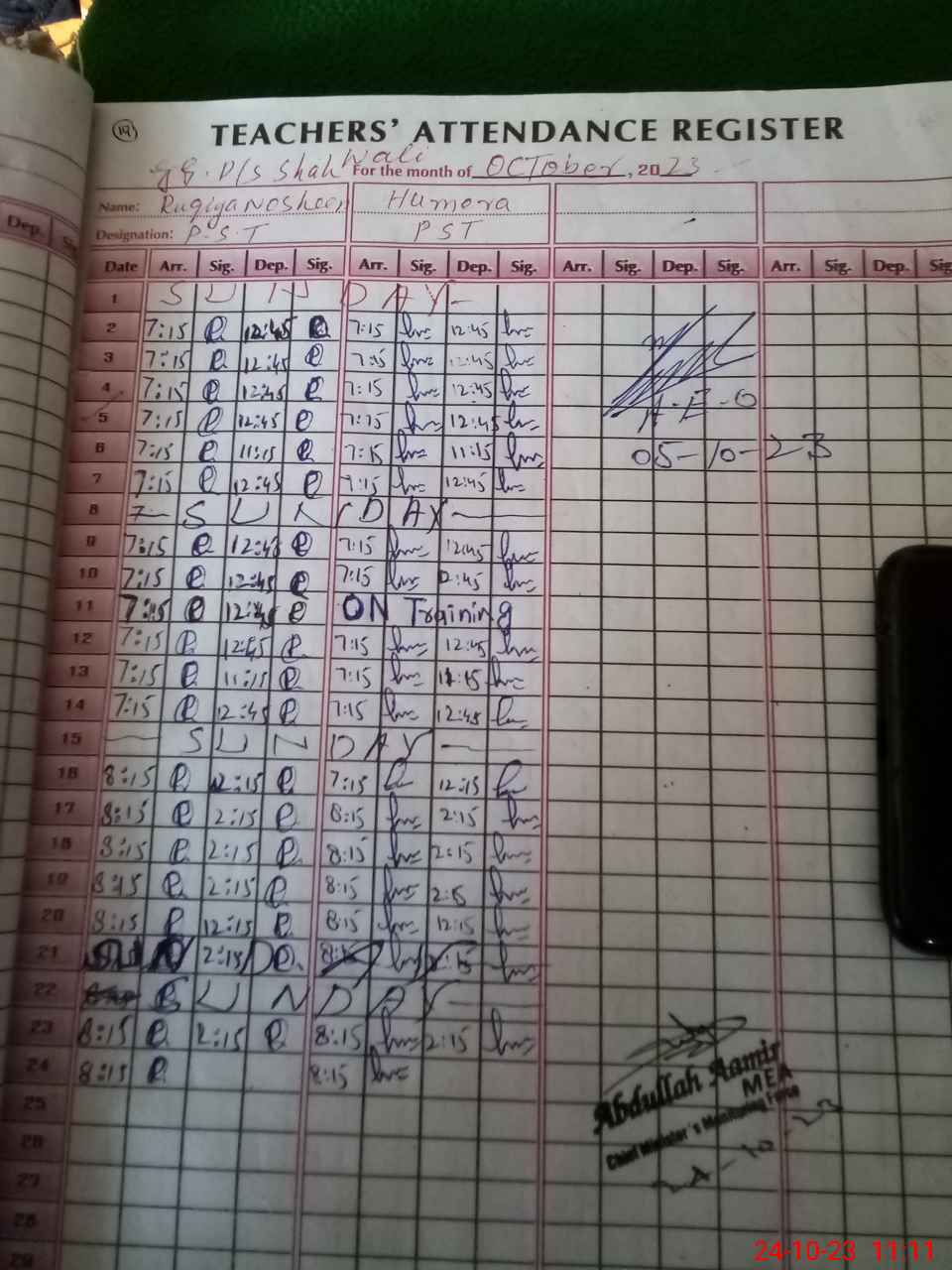 | Name: RU**** NO**** Designation: (School Headmaster's/Headmistress's) PST/PTC/JV Phone/Cell Number: 03**** |