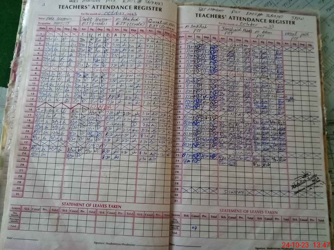| Name: Fi**** Hu**** Designation: (School Headmaster's/Headmistress's) Sst Phone/Cell Number: 03**** |