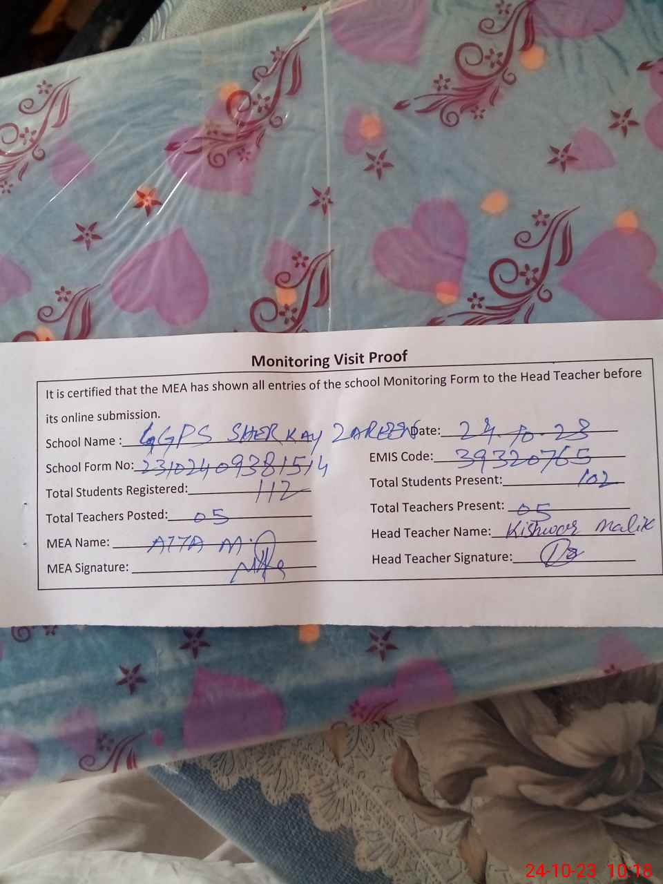 | EMIS Code: 39320765 | Name of School: GGPS SHERKAY ZAREEN | |||