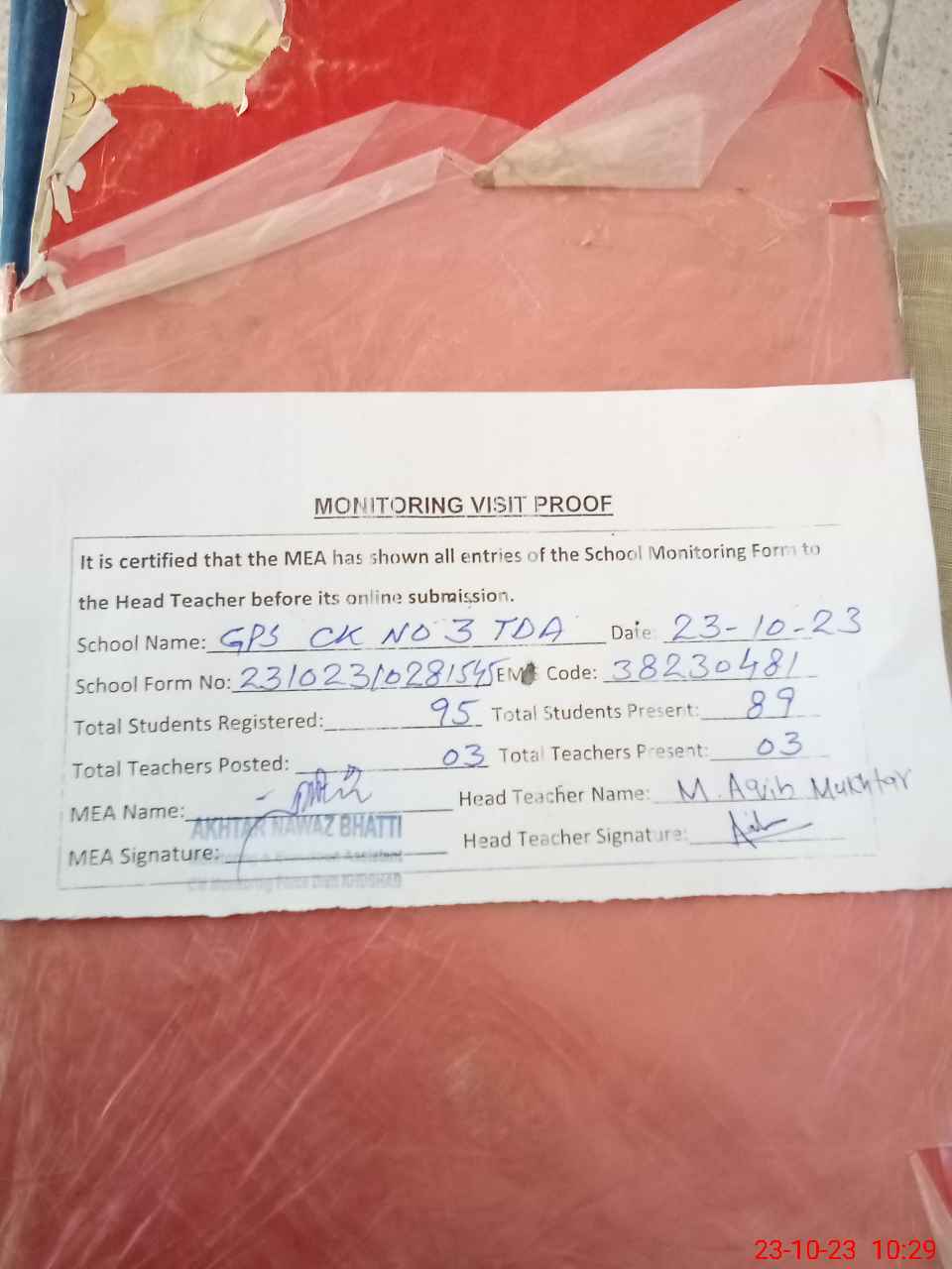 | EMIS Code: 38230481 | Name of School: GPS CHAK NO 3 TDA | |||
