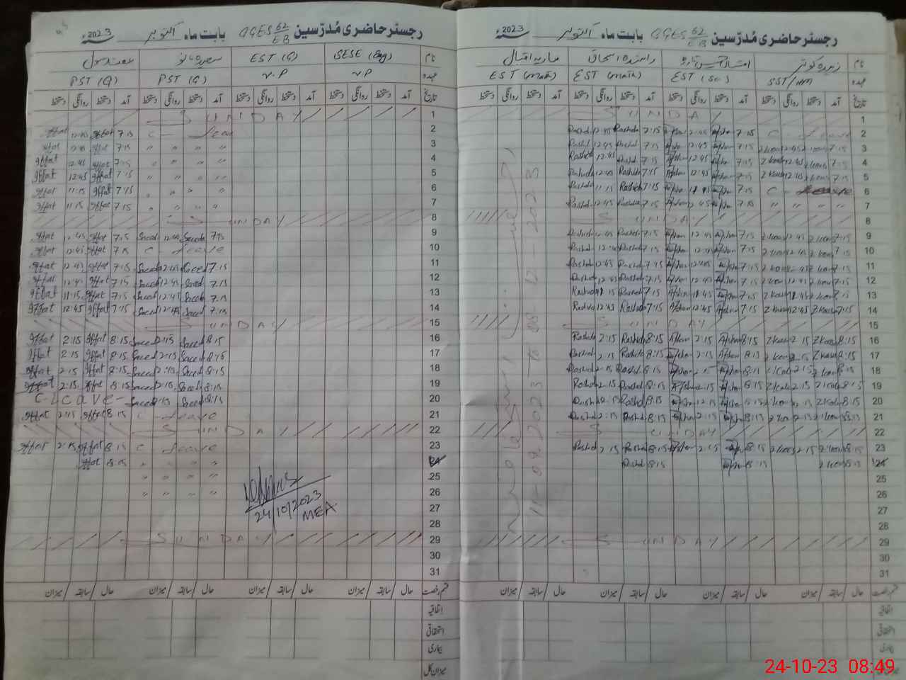 | 36**** | Sa**** Ba**** | 1 | 0 | 0 | 30 | 0 | 30 | 0 | 0 | 0 | 0 | Absent (Un-Authorized) | |