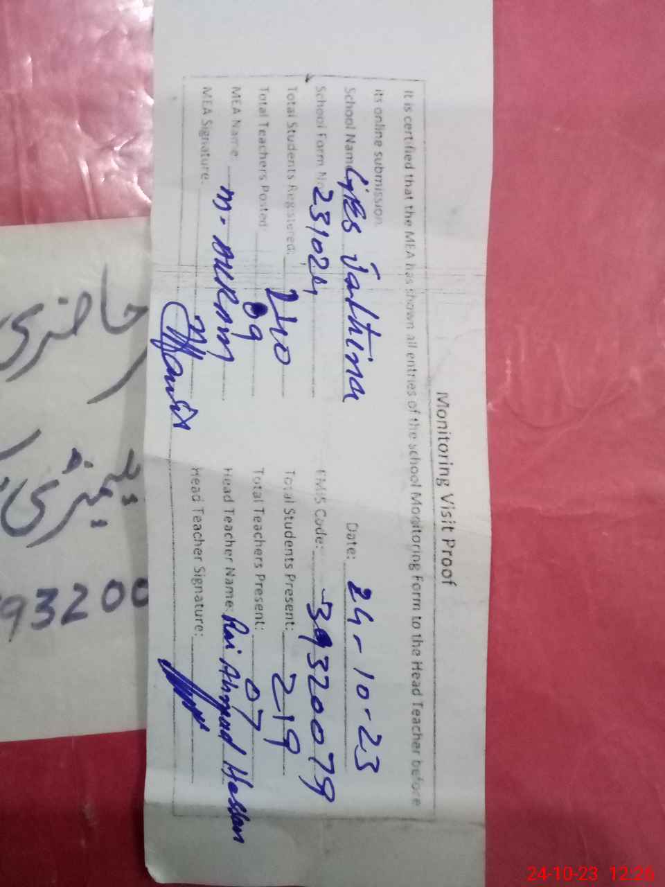 | Name: Mu**** Ja**** As**** Designation: (School Headmaster's/Headmistress's) SST Phone/Cell Number: 03**** |