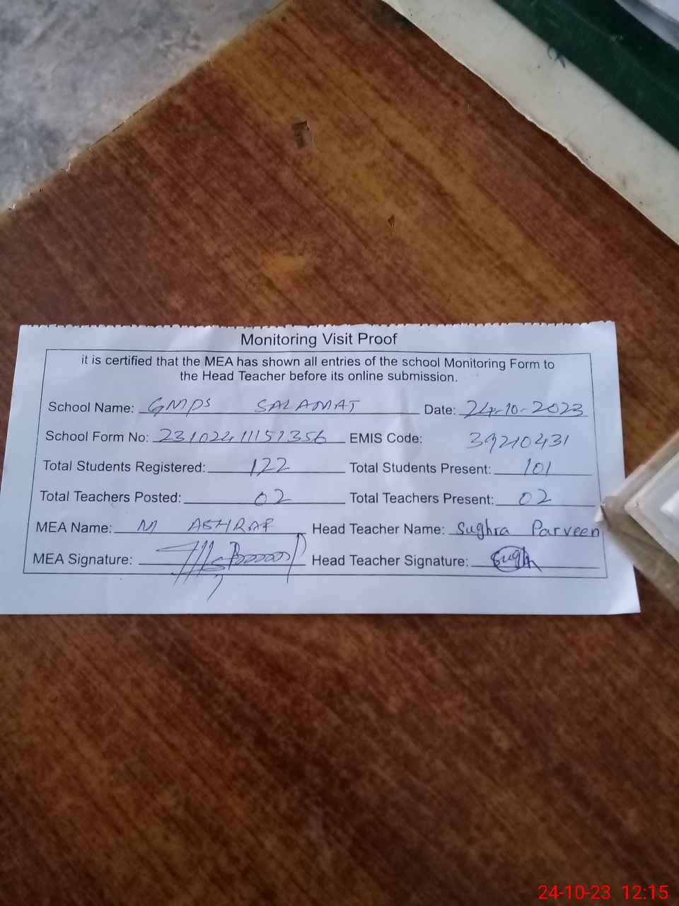 | EMIS Code: 39210431 | Name of School: GMPS CHAK SALAMAT | |||