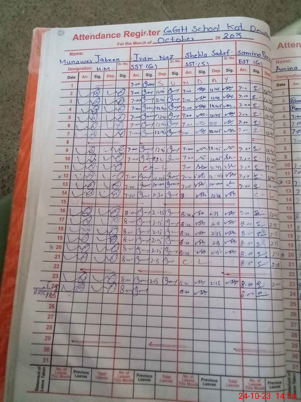 | CNIC | Full Name | Designation | R/C | Absence During Last Calender Month |