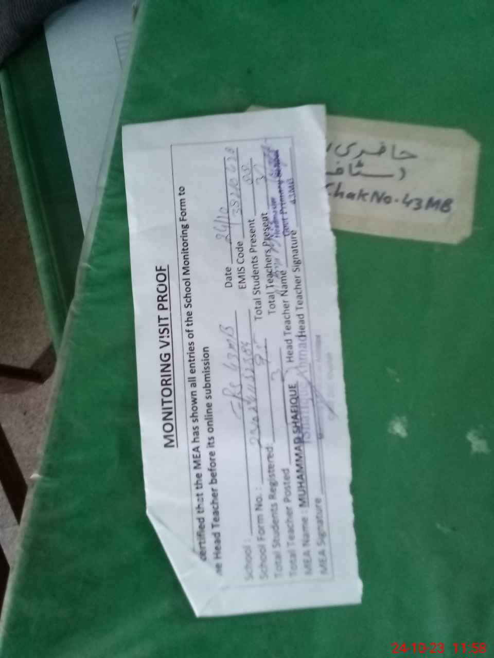 | EMIS Code: 38210428 | Name of School: GPS CHAK NO. 43 MB | |||