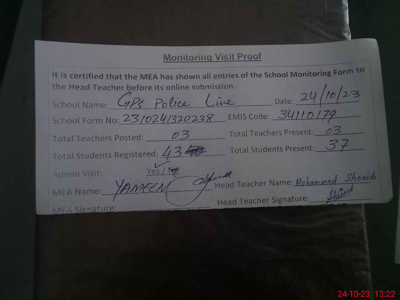 | Name: Mu**** Sh**** Designation: (School Headmaster's/Headmistress's) PST Phone/Cell Number: 03**** |
