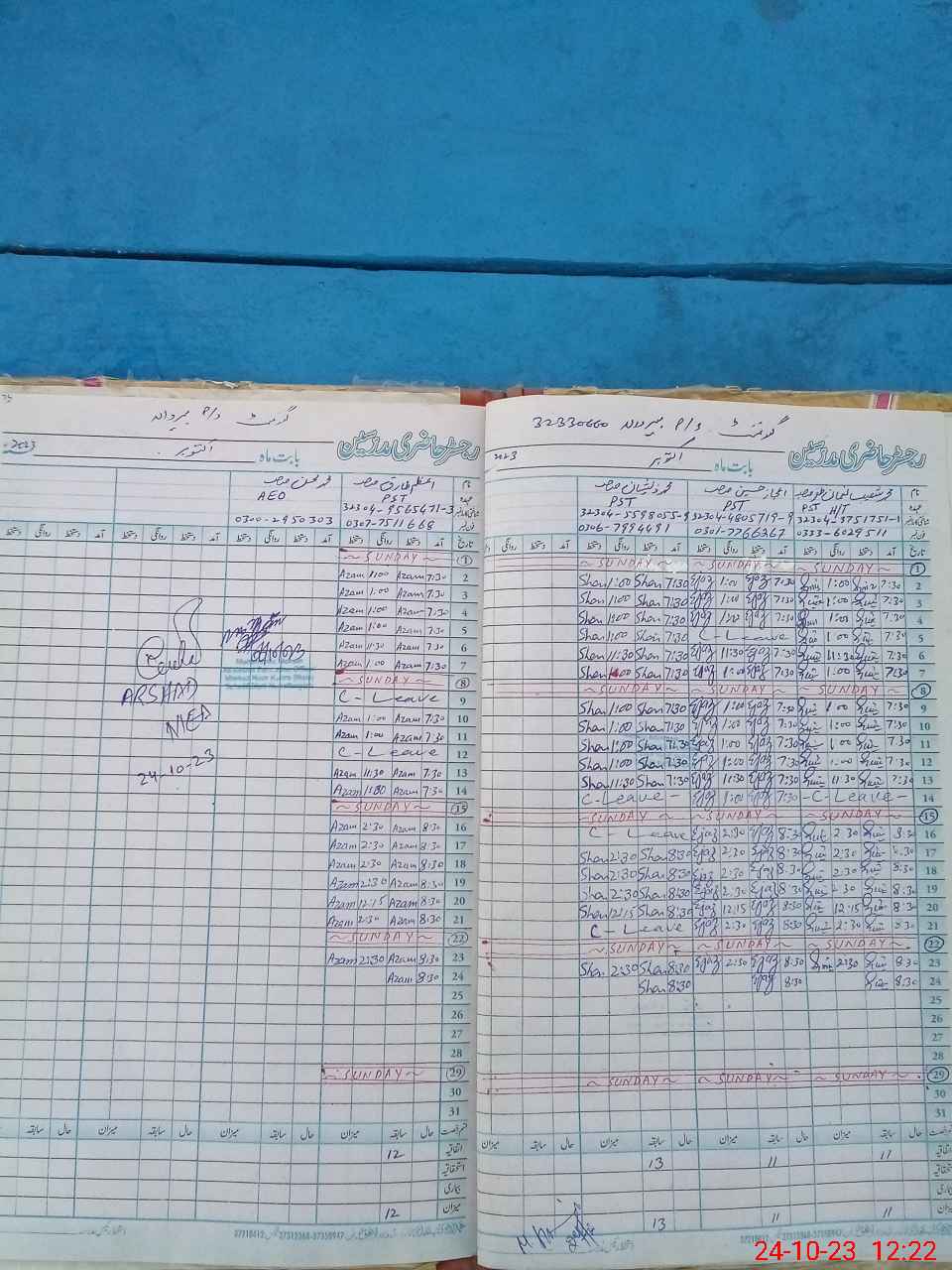 | CNIC | Full Name | Designation | R/C | Absence during last cal. month |