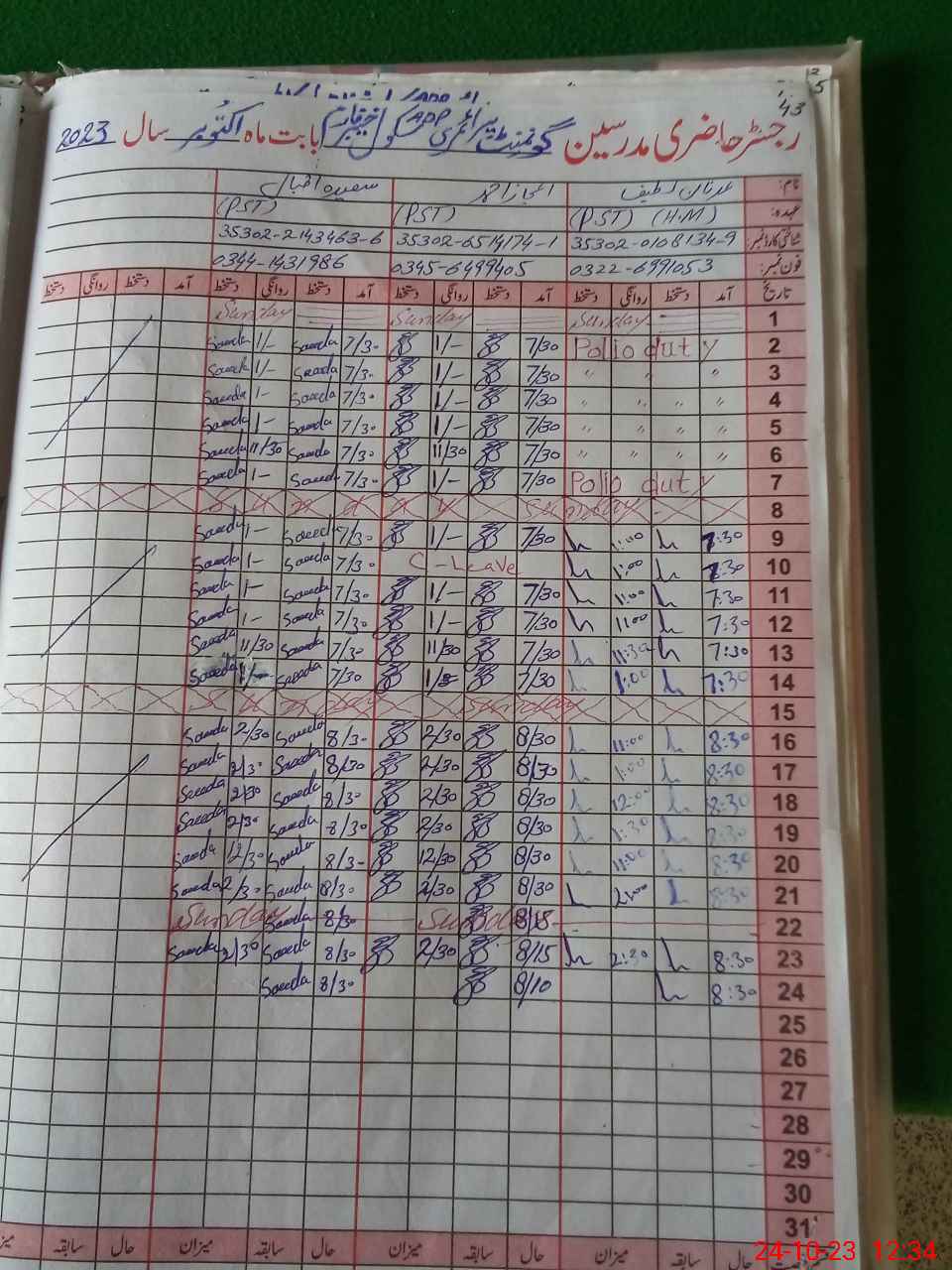 | CNIC | Full Name | Designation | R/C | Absence During Last Calender Month |