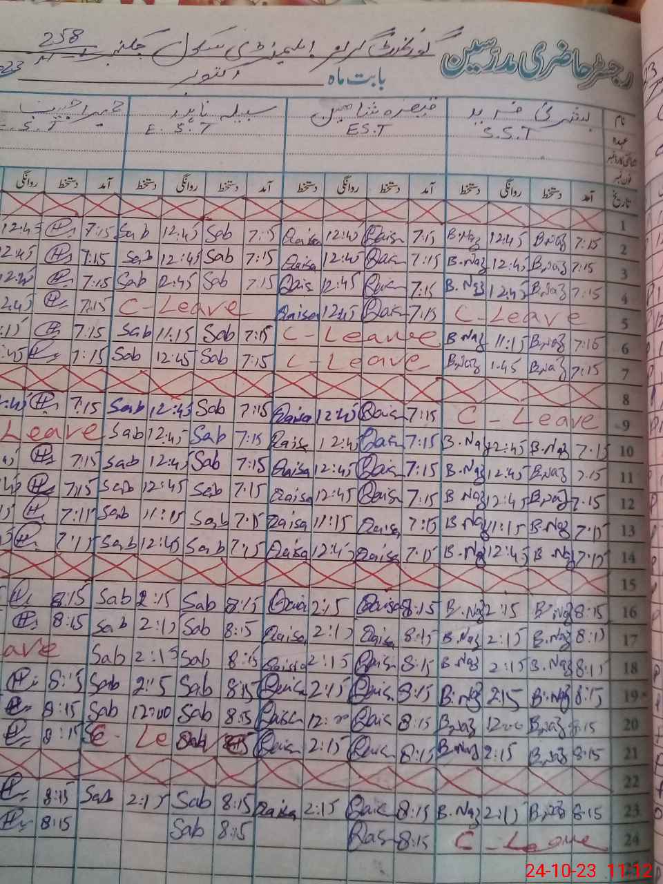 | 31**** | Bu**** Fa**** | 5 | 1 | 0 | 0 | 0 | 0 | 0 | 0 | 0 | 0 | 0 | Absent (Un-Authorized) |