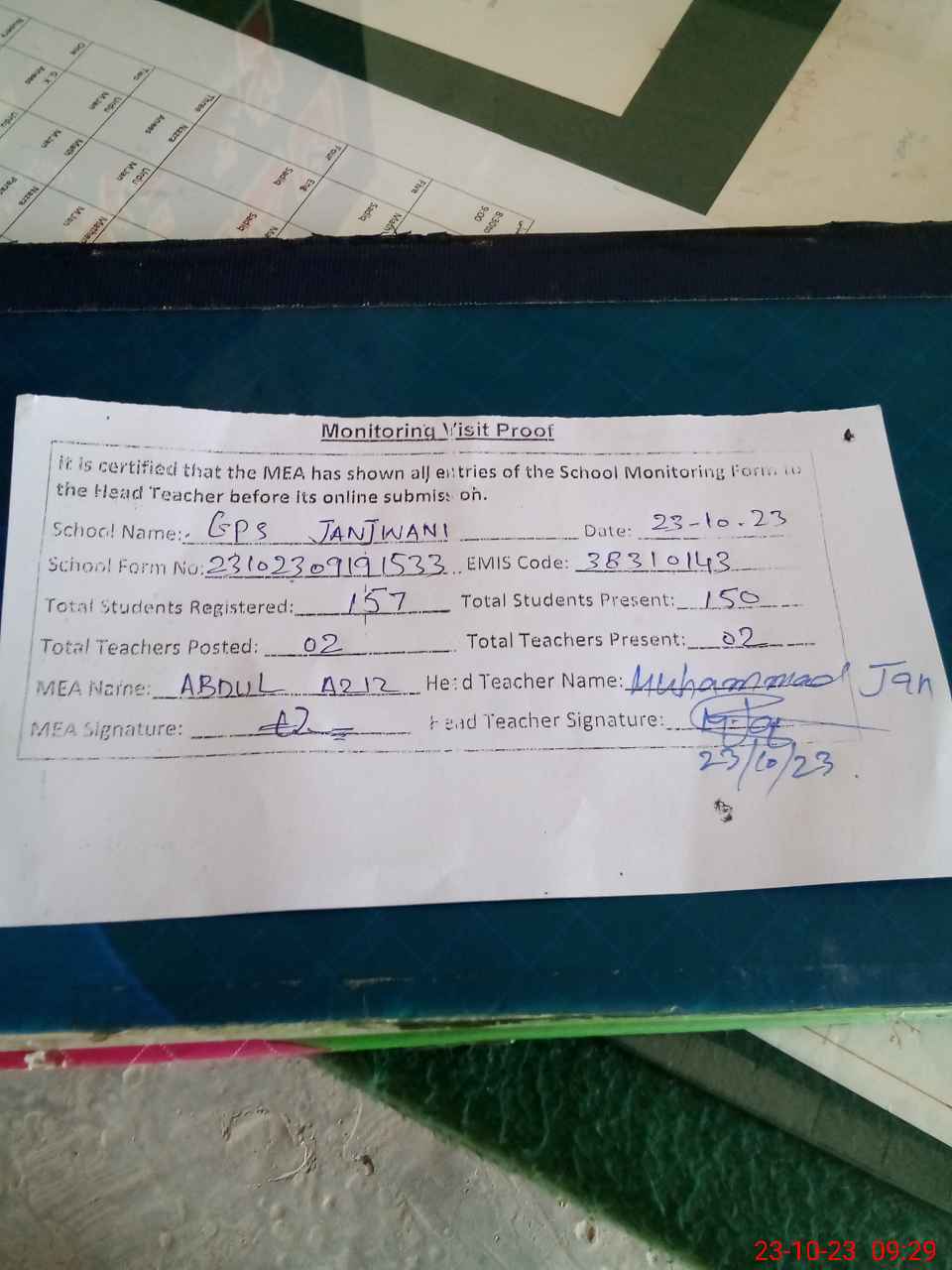 | EMIS Code: 38310143 | Name of School: GPS JANJWANI | |||