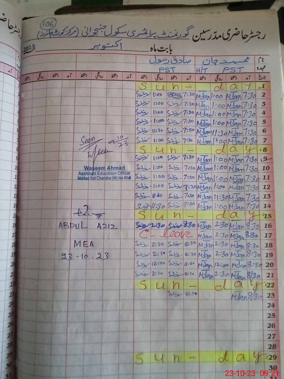 | Name: Mu**** Ja**** Designation: (School Headmaster's/Headmistress's) PST Phone/Cell Number: 03**** |